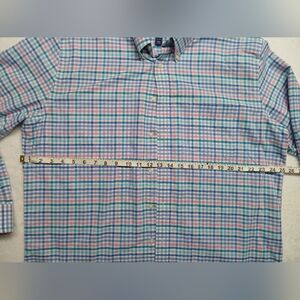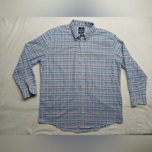 Stafford Blue and Pink Plaid Button-Down Shirt Size 34-35 Neck 17 1/2