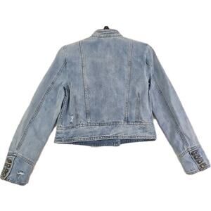 Free People Military Motto Double Breasted Denim Jacket -Size XS-Distressed.