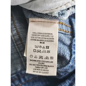 The Free People Military Motto Double Breasted Denim Jacket in size M is a stylish and versatile outerwear piece perfect for casual occasions. Made from cotton denim, this button-up jacket features a collared neckline, double-breasted closure, and long sleeves, making it suitable for all seasons. The distressed detailing adds a trendy and edgy touch to the solid blue color, while the unlined jacket has a short length and pockets for added convenience. This Military Jacket from Free People is a must-have for women looking for a unique and fashionable addition to their wardrobe.