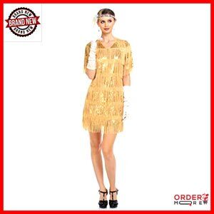 Brand new, never worn, and in flawless condition — this stunning flapper dress exudes 1920s glamour with its dazzling sequins and dynamic tiered fringes, perfect for creating a show-stopping look at any special event.