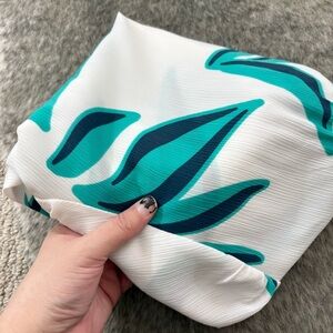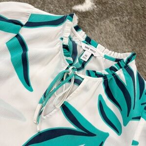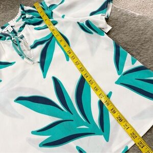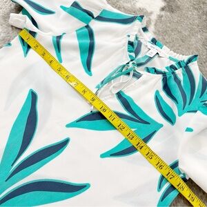 Here’s a super cute blouse by Nine West. This is the Tie Front Ruffle Neck Blouse in a size XS. Brand new with tags and in great shape. Semi sheer. Perfect for the office or for everyday wear. :)