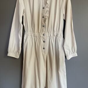 Xirena Harlee Jumpsuit Size Small Bisque Cream Corduroy Ruffle High Neck Chic
