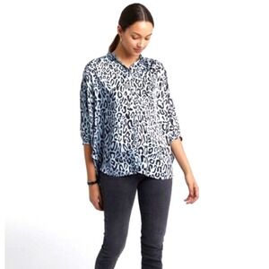 Rebecca minkoff Fleur Half Sleeve Blouse Blue And Black Leopard Print Size Small