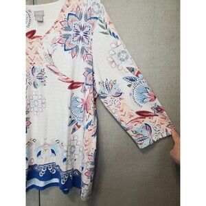 Chico's Jersey Knit Mixed Print V-Neck 3/4 Sleeve Tunic Size 3 (XL) Boho