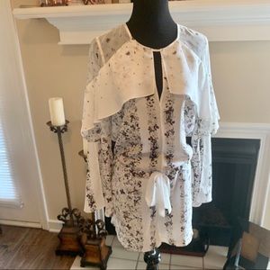 BCBGMAXAZRIA Vivianne White Floral Ruffle Romper Jumpsuit