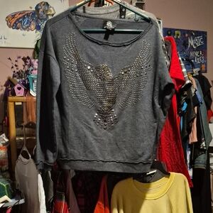 Chic charcoal top with sparkling rhinestone detail. Ideal for everyday style.