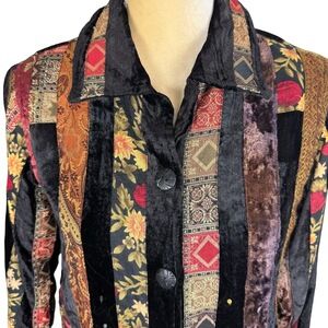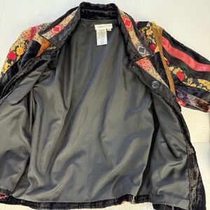Coldwater Creek Jacket Womens Small Petite Black Patchwork Sequined Velvet