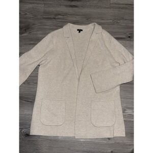 Talbots Wool Blend Beige Cardigan Knit Sweater Size Medium Open Front Pockets
