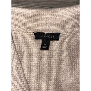 Excellent preowned condition Talbots Wool Blend Beige Cardigan Knit Sweater Size Medium Open Front Pockets. Great staple piece. Excellent preowned condition. No stains, no holes. Please see all photos for the exact item. You will be receiving and feel free to request any additional photos.
