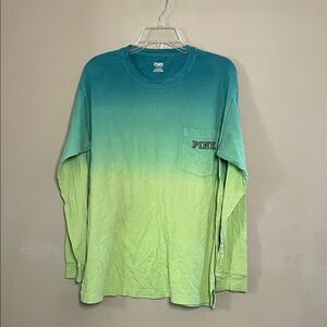 PINK Victoria's Secret Gradient Blue Green Long Sleeve Tee SZ L