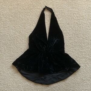 Express Crushed Velvet Halter Backless Tank Top Going Out Blouse Size 4 Black