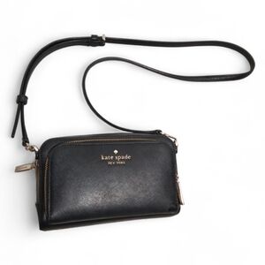 his is a chic, compact Kate Spade Staci Dual Zip Around Crossbody Black — a versatile everyday crossbody made from saffiano leather with dual zip compartments, an adjustable strap, and elegant gold-tone hardware. The dual zip design makes it great for organizing essentials like phone, cards, keys, and lipstick without bulk. Great for travel, errands, date nights, or just effortless hands-free style.
