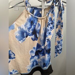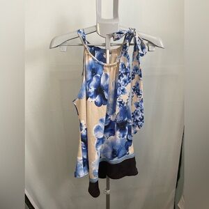 NY & co Floral Blue and Cream Women's Top Size XL