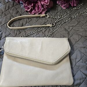 HOBO Cream Leather Wristlet with Chain Strap