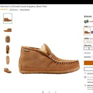 L.L. Bean Genuine Lamb Fur Women’s Wicked Good Slippers, Boot Moc Size 7