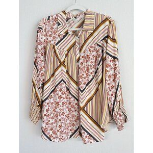 CATO Women’s Floral Pattern Blouse Size 18/20W Long Sleeve w/Gathered Cuffs Boho
