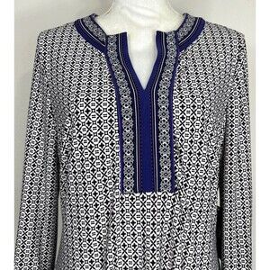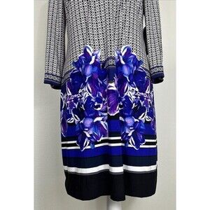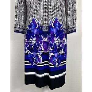 New York & Company Purple Geo Print Knee Length Dress Size Large (12/14)