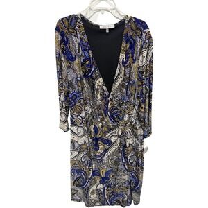 Kasper Faux Wrap Dress Womens Size 3X V-Neck 3/4 Sleeves Paisley NWT Formal