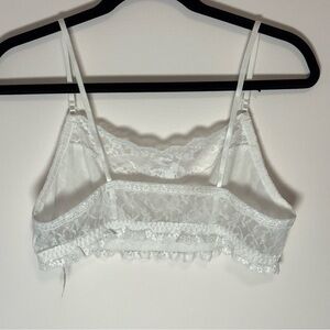 This elegant white lace bralette offers a delicate and comfortable fit, perfect for any occasion. The intricate lace design adds a touch of sophistication to your intimate collection.