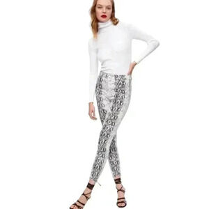 It's time to make a statement in these ultra alluring Zara Snake Skin Print High Rise Raw Hem Skinny Jeans.
