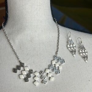 Brighton Lanakai Necklace & Earrings Set Silver Plated White Enamel EUC