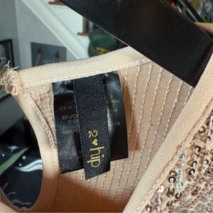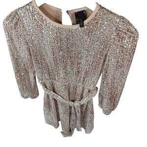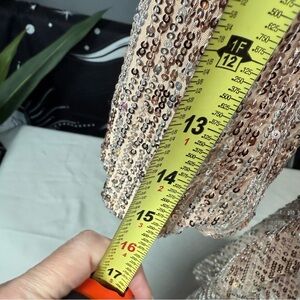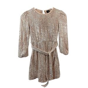 Shine in this elegant gold sequin mini dress, ideal for any special occasion. Its sparkling design ensures you stand out with style. Very small line of 4 sequins missing, see pic. Not noticeable unless you're looking for it.