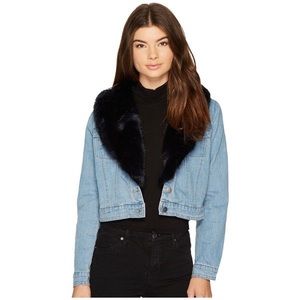BB Dakota faux fur collar denim jean jacket size M removable collar