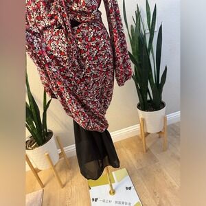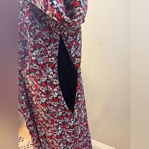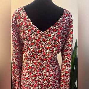 Sanctuary Floral Print Midi Dress Large Red Halter Neck Long Sleeves Cutout Boho