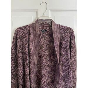 Apt. 9 open front draped cardigan sweater with purple and metallic gold zigzag pattern. In excellent condition!