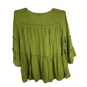 Cocomo Woman Plus Size 3X Green Tiered Boho Tunic Dress Flowy Bell Sleeves Rayon