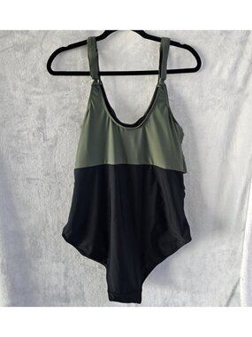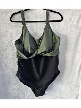 🆕3XL Army Green Black Criss Cross Cutout One Piece Swimsuit NWOT