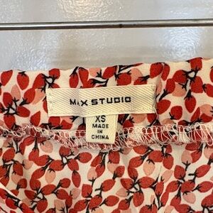 MAX STUDIO side cinched ruffle Red Floral Skirt