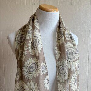 Elegant floral scarf with sunflower design. Lightweight and stylish. Perfect for any occasion.