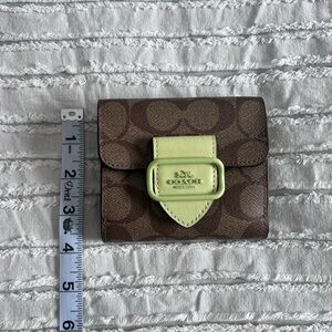 Classic signature Coach wallet with matted neon detailing.