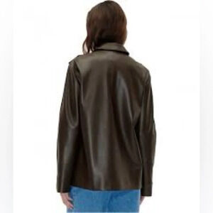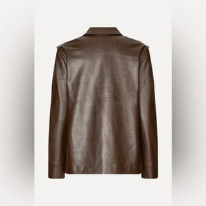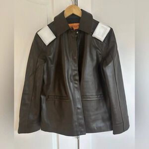 NEW Stine Goya Straight Sleeve Faux Leather Jacket in Chocolate Brown | size XS