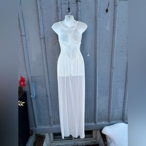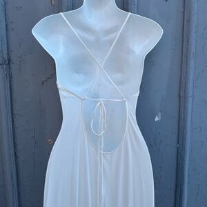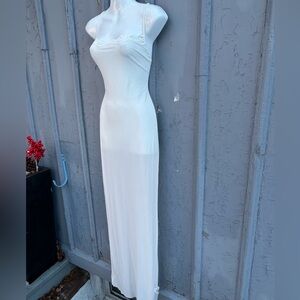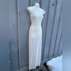 Gorgeously soft sheer and sexy. Skims Sheer Cream Maxi Slip. Wear around the house lounging, to your hot date, or for sleeping. This beautiful lace trimmed open back slip option has many possibilities.