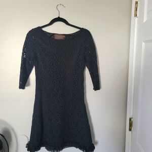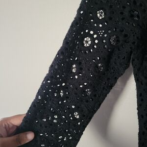 Zara Women's Black 3/4 Sleeve Crochet Bohemian Dress. Size M
