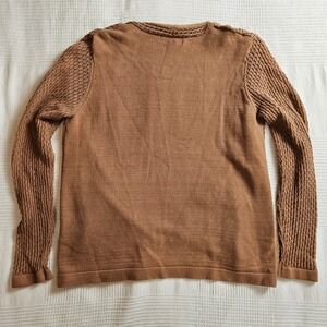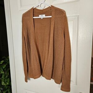 Magaschoni Open Front Cardigan Camel Brown Tan Cabin Mixed Knit Sweater Women M