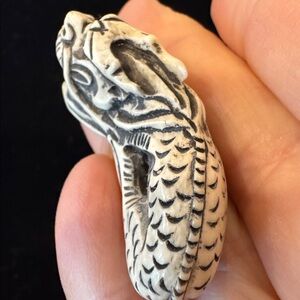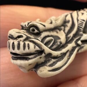 Small Faux Ivory Dragon Netsuke With Black Detailing