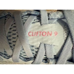 Keywords: Hoka, Clifton 9, women's running shoes, lightweight, breathable, cushioned comfort, durable outsole, athletic shoes, blue running shoes, lace-up sneakers, low top, engineered mesh, rubber outsole, new with tags.