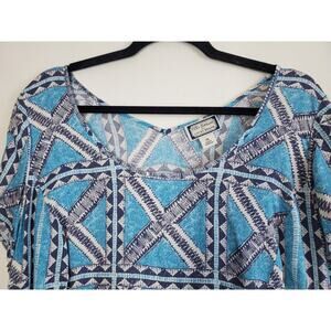 Lucky Brand Womens 1X Peasant Top Boho Printed Bohemian Blue Lightweight