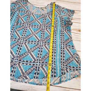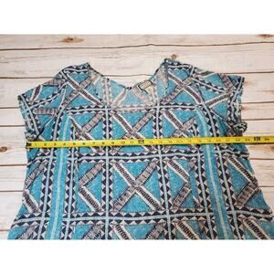 Lucky Brand Womens 1X Peasant Top Boho Printed Bohemian Blue Lightweight Scoopneck