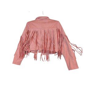 Blush Pink Fringe Suede Cropped Western Jacket With Dramatic Flowing Tassels