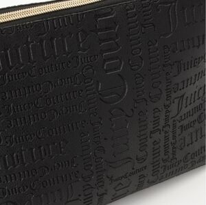 Juicy Couture Black Embossed Cosmetic Case, Zip Top Wedge Matt Logo, New
