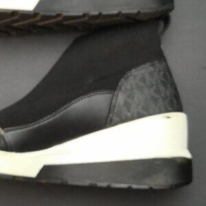 Michael Kors Ladies Size 6.5 Black & White Wedge Pull On Style Sock Booties
