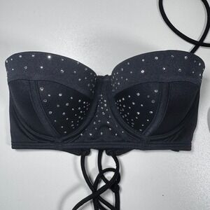 Victoria's Secret VS Bandeau Swim Top Rhinestone Black Strapless 32B Coquette