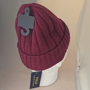 Elevate your winter style with this Ralph Lauren knit hat. Features a deep red hue and classic design.