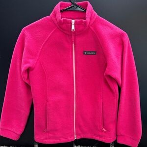 Columbia fleece in vibrant pink. Full-zip design with cozy fabric.