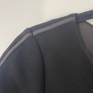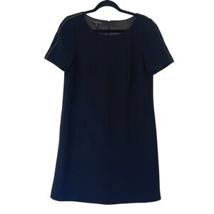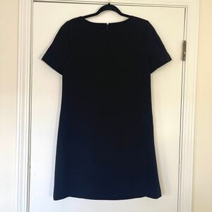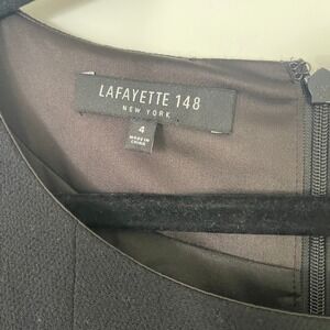 Lafayette 148 New York black short sleeve shift dress size 4. Sophisticated and versatile, this dress features a flattering shift silhouette with subtle seam detailing and elegant trim on the sleeves.