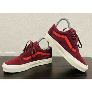 The VANS Unisex Secret Lover Port Royale Skate Old Skool Canvas Suede Shoes in size M5/W6.5 are a stylish and versatile pair of sneakers perfect for casual occasions. Featuring a low-top style with lace-up closure and a red color with logo accents, these shoes are made with canvas lining and suede upper material. The rubber outsole provides traction, making them suitable for skateboarding and everyday wear during the summer, fall, and spring seasons. With the iconic VANS brand and classic design, these shoes are a must-have for any wardrobe.
